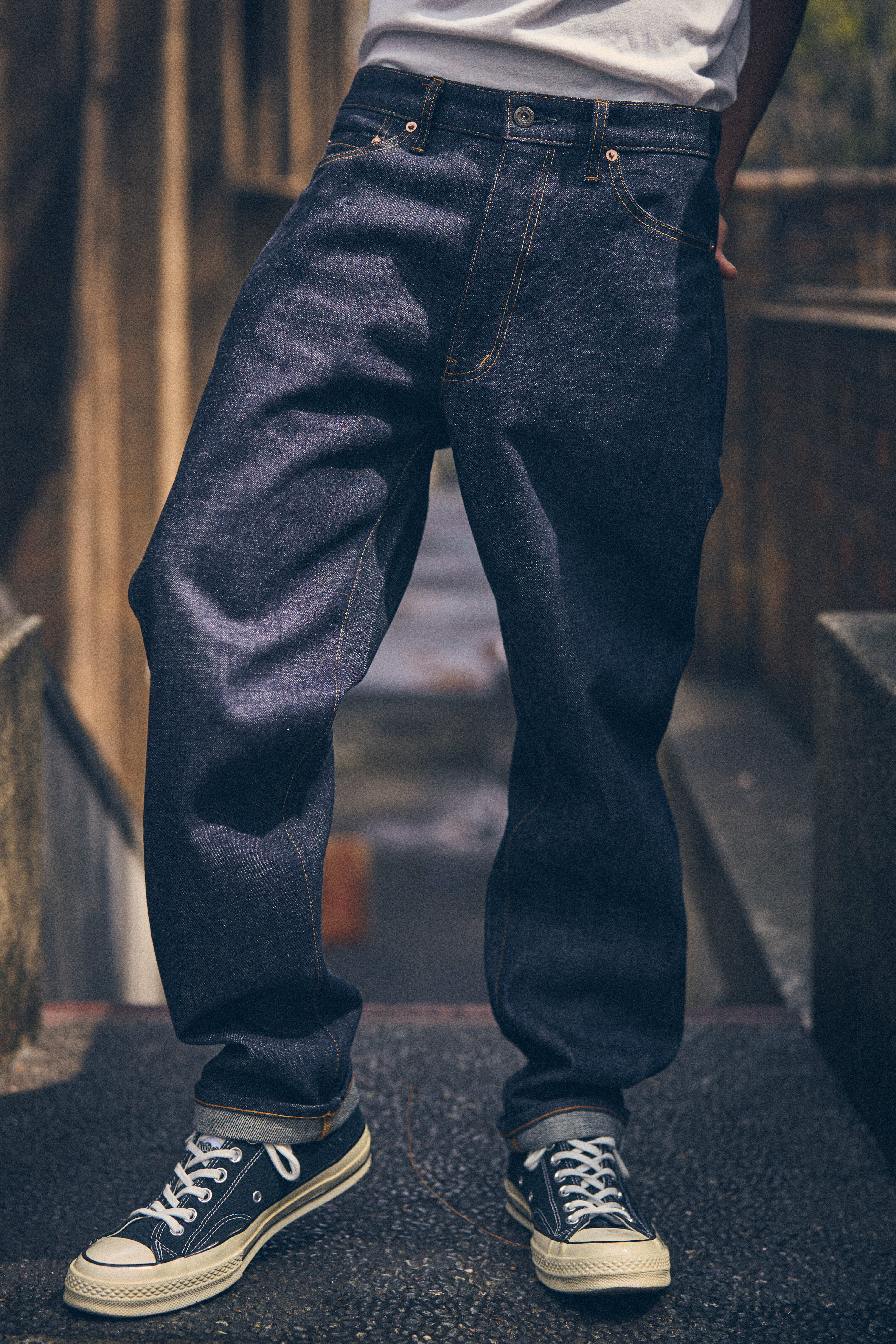 本コレクションは LAMPEYE のストリートマインドと I WA JEANS のクラフトマンシップが融合した特別仕様。13,5oz のタフなデニム生地で、履き込んでいくと色落ち、風合い、等エイジングも楽しめる仕様になっております。